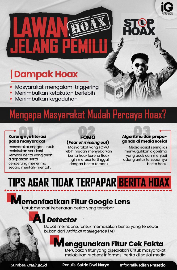 • Legitimasi Pemilu Terancam: Jika hoax berhasil memengaruhi opini publik secara signifikan, legitimasi hasil pemilu dapat dipertanyakan, yang pada gilirannya dapat mengganggu stabilitas politik.
