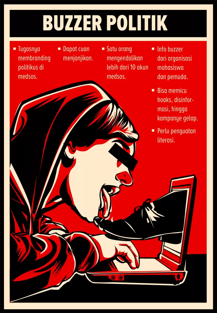 - Mempengaruhi Agenda Publik: Mengarahkan percakapan publik ke isu-isu tertentu yang menguntungkan pihak yang menggunakan buzzer.