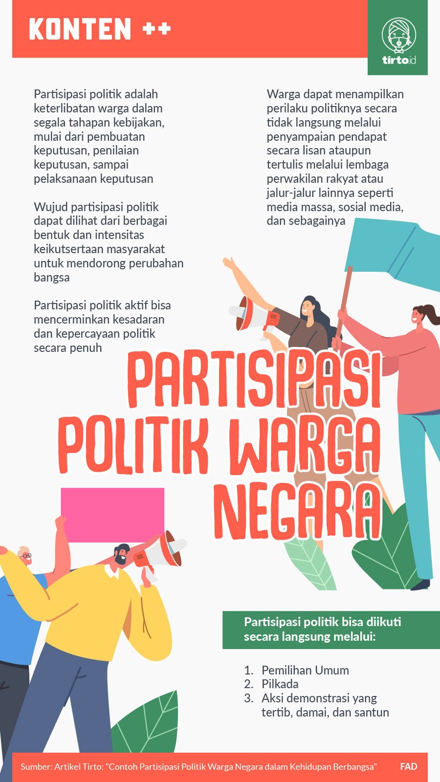 Warga negara bukan hanya objek dari kebijakan politik, tetapi juga aktor utama yang memiliki kekuatan untuk memengaruhi arah politik. Partisipasi warga negara dalam politik dapat dilakukan melalui berbagai cara, antara lain: